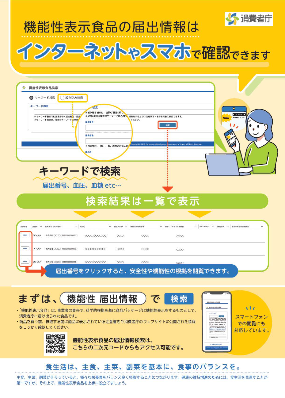 機能性表示食品の届出情報はインターネットやスマホで確認できます【消費者庁】