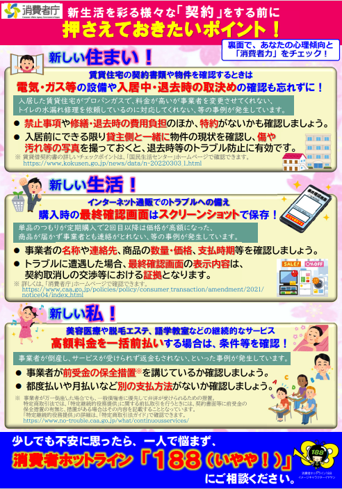新生活を彩る様々な「契約」をする前に 押さえておきたいポイント【消費者庁】