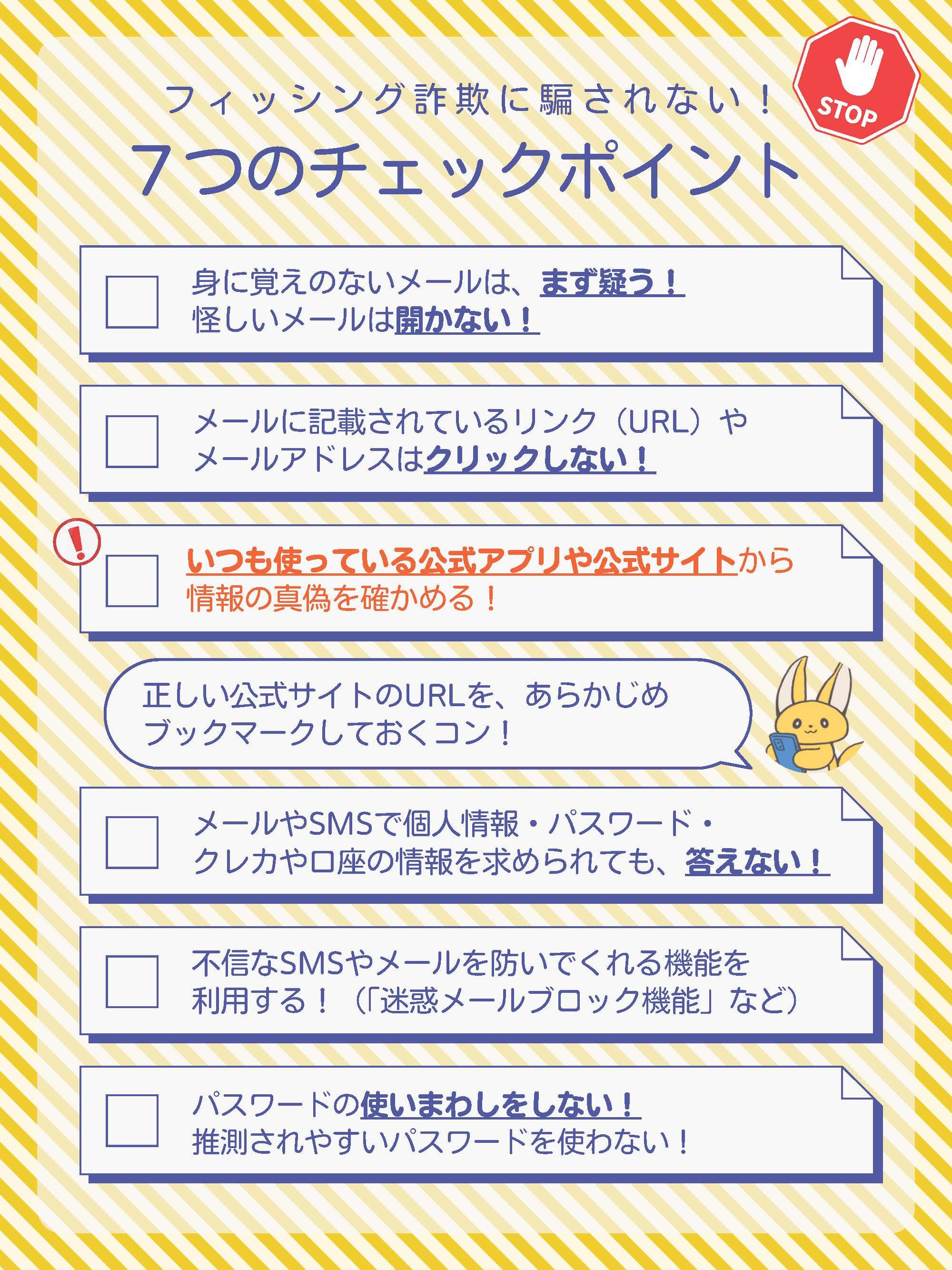 フィッシング詐欺に騙されないためのポイント(フィッシング詐欺7つのチェックポイント)【消費者委員会】