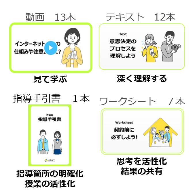 概要 | 近年、インターネット通販やキャッシュレス決済の増加など、消費生活のデジタル化が進展しています。デジタル社会における消費者被害の発生及び拡大を防止するため、若年者を中心とする幅広い世代の消費者が安全・安心に消費生活を送るために必要な知識を習得していただける啓発用デジタル教材です。 |