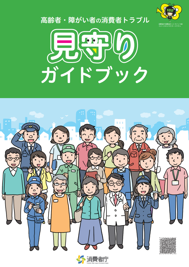 | 概要 | 本ガイドブックは、地域で活動する多様な担い手の見守りに活用いただくことを目的として作成されました。具体的なトラブル事例を通して、消費者被害の気付き、高齢者・障がい者への声かけ、福祉部門(社会福祉協議会・地域包括支援センター等)と消費生活センター等の関係機関との連携、消費者問題に関する解説等、見守り活動に必要な知識を体系的に学んでいただけるようにしました。なお各ページには視覚障がい者の情報アクセシビリティに資するため、ユニボイス(※)の音声コードを付しております。 |