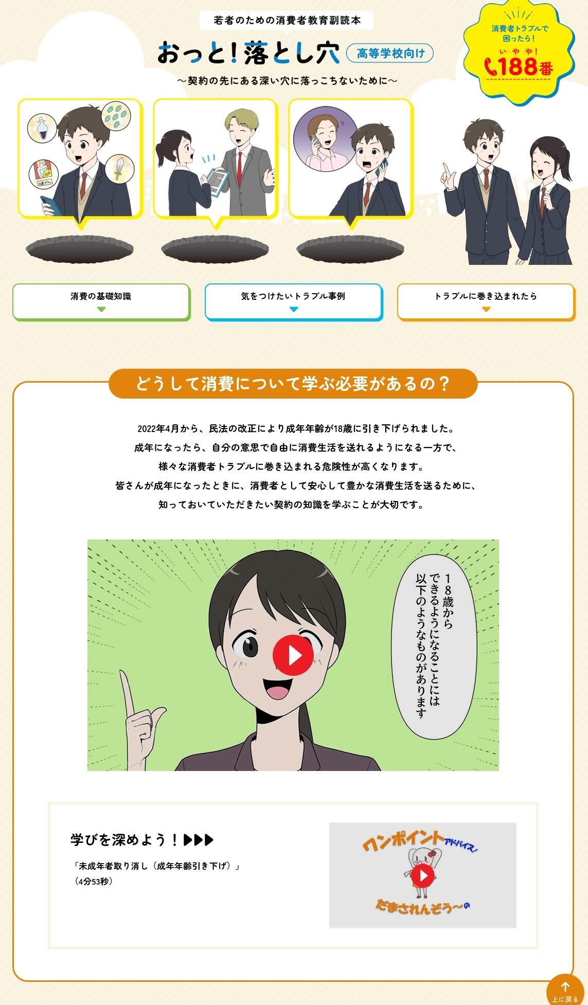 | 教材名 | 高校生向けWeb版消費者教育副読本「おっと!落とし穴」 |