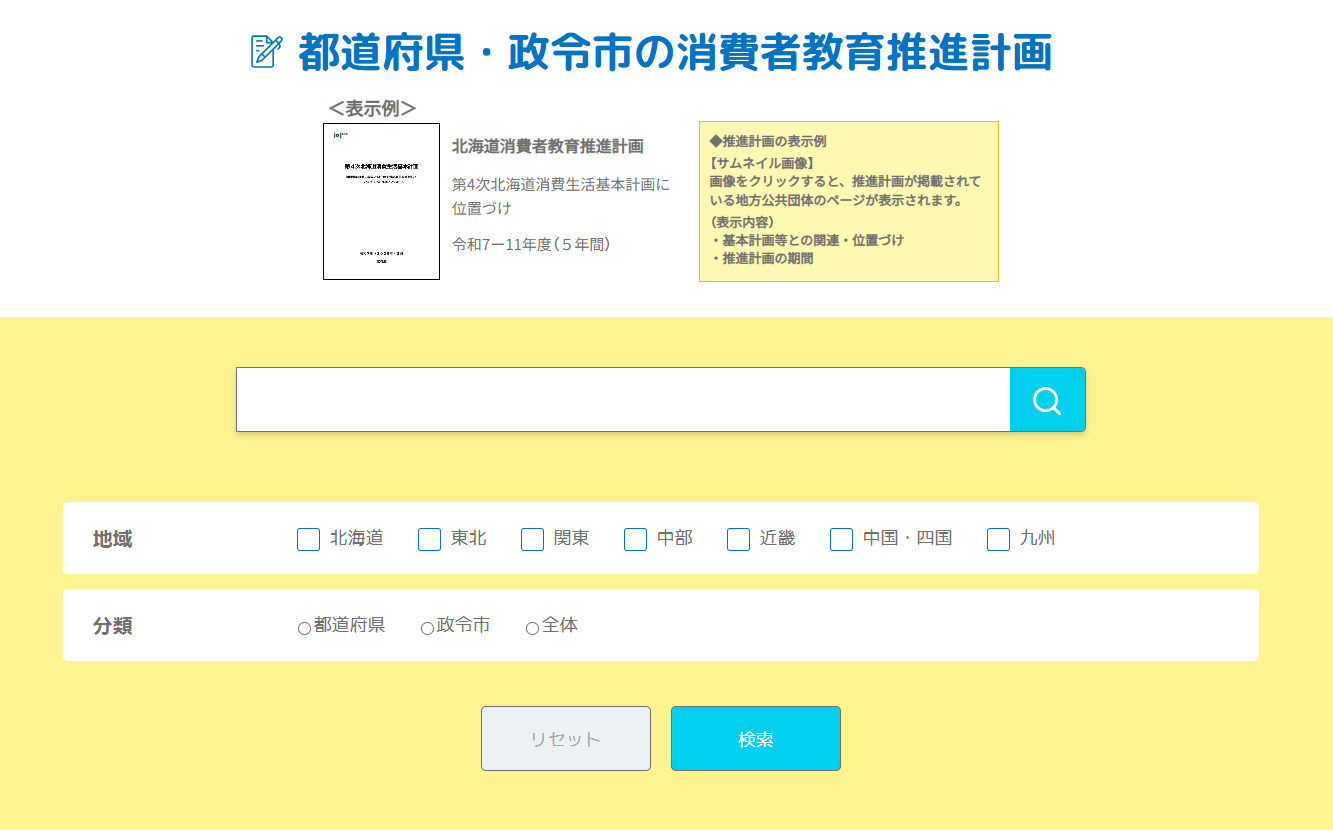 消費者教育推進法(第十条)では、都道府県・市町村は、消費者教育の推進に関する施策についての計画(消費者教育推進計画)を定めるように努めなければならないとされています。 都道府県・市町村により、計画の名…